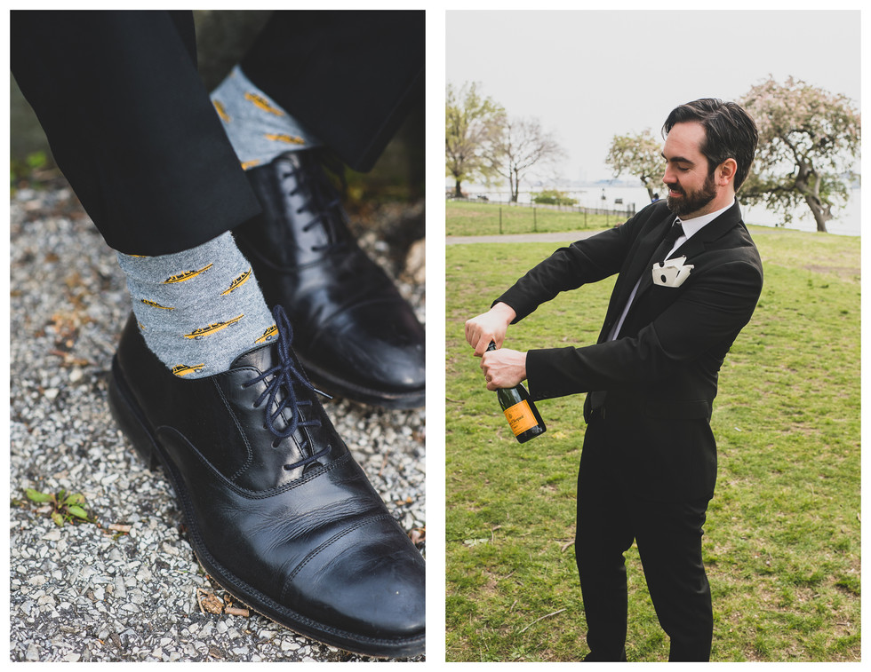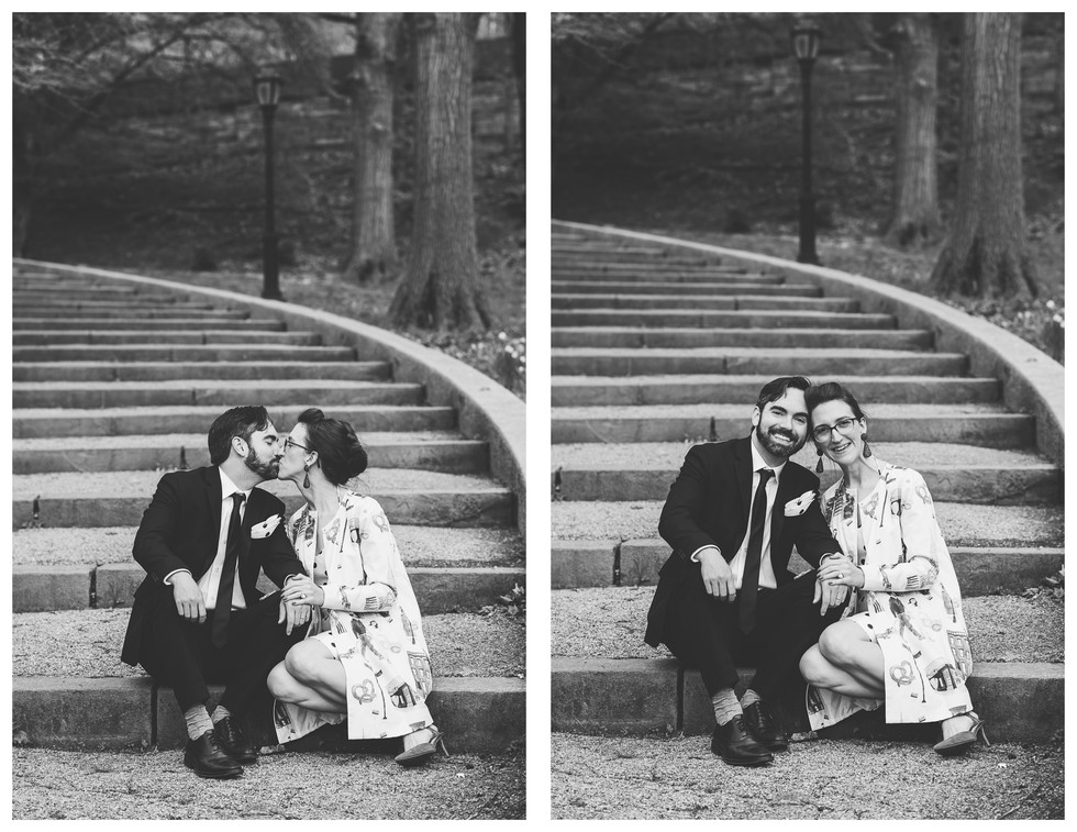 We returned to the exact spot in Central Park where they tied the knot, then met up with the taxi for a couple stops at Lincoln Center and Riverside Park. Jennifer sported a custom jacket from Suite by Jennifer Diederich, complete with illustrations done by Carly Martin of The Clementine Studio. One of the best parts of this jacket was the illustration based on one of my photos from their engagement session...