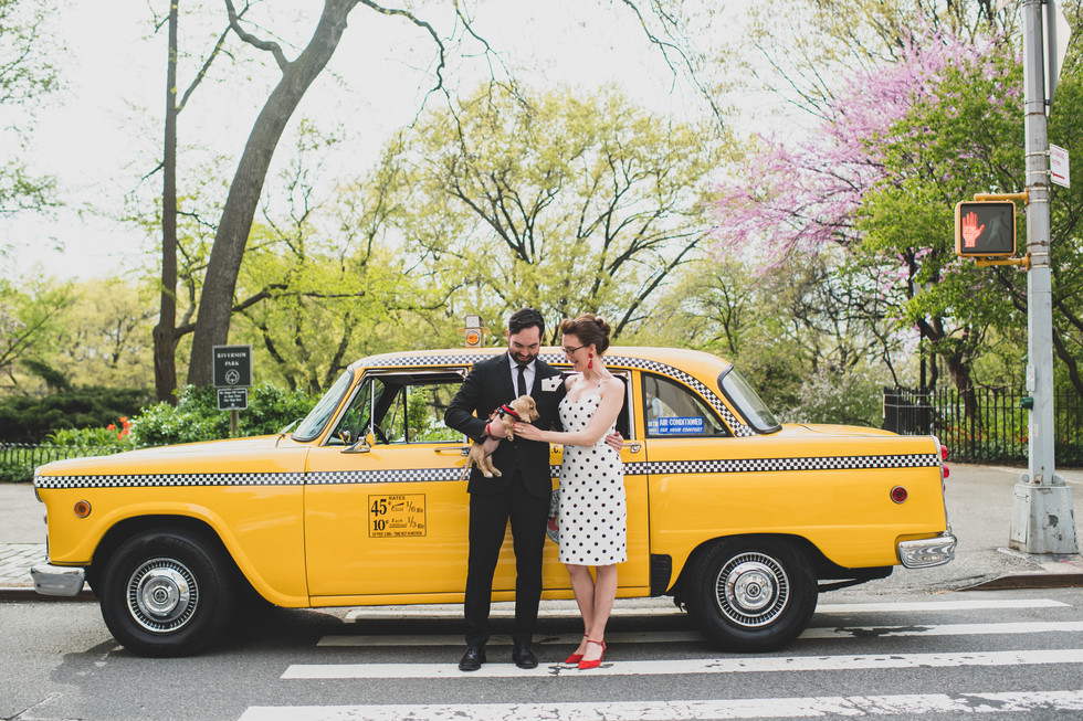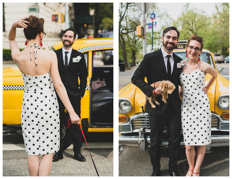 After a few more schedule changes and continuing uncertainty with COVID, they made the unfortunate decision to cancel. But to mark their first anniversary, they wanted a special photo session, complete with the classic NYC taxi cab (from Film Cars) that they originally planned to have... and to include their brand new fur baby, Buffy!