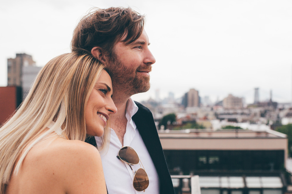 This is exactly the type of engagement session I love to photograph: begin at the couple's home, make our way to the rooftop (if possible), and a casual walk around the neighborhood. It's personal and puts everyone at ease.