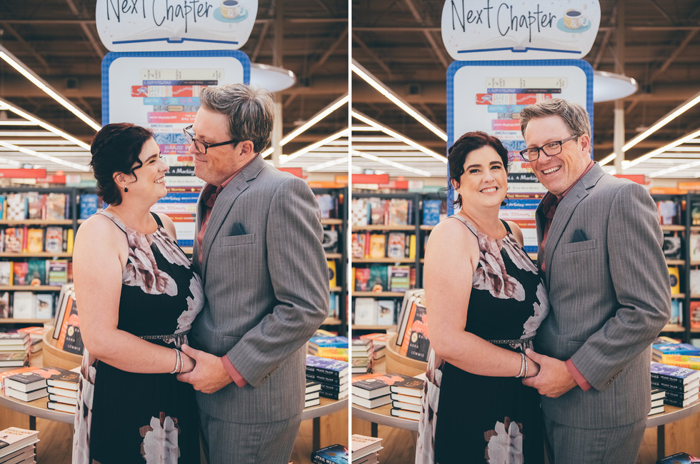 After Jeff got a quick touchup at Charlie & Co., we made our way south into Wilmington, DE. We returned to the scene of the crime aka "the site of their first date". In addition, we visited the local Barnes & Noble where Lorelei works. Again, they wanted to emphasize their love of books, and I am always more than happy to photograph in a bookstore.