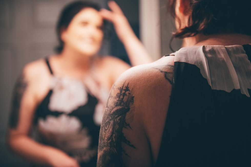 As soon as I arrived to their apartment, I knew it was going to be very difficult for me to leave. Along with their extremely sweet rescue pittie, Sydney, a menagerie of cats occupied all the rooms, as they both foster kittens. In addition to all the fur babies, the home was filled with wonderful personal mementos that showed off their interests and personalities... from a very healthy book collection, to the wall of soccer (footie) scarves, knickknacks of favorite animation stars, a copy of Jeff's first issue of his Stanchion zine, and records, including a special album by Gordi. So special, Lorelei and Jeff got matching tattoos of "Something Like This", in honor of her song.
