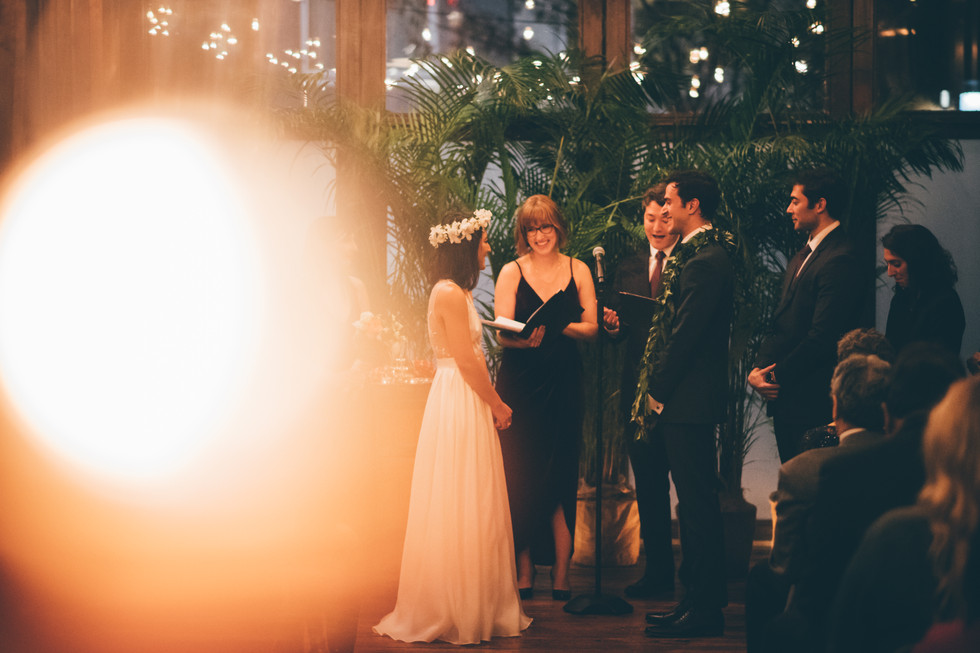 It was a chilly, misty December day, but still provided for some very cool, moody "first look" shots and portraits on the roof of 1 Hotel. The Brooklyn Bridge just peaked out from the mist to make sure we got some iconic NYC imagery.