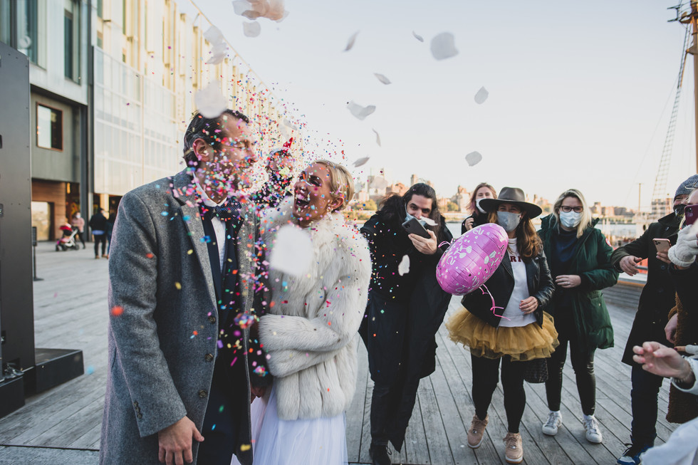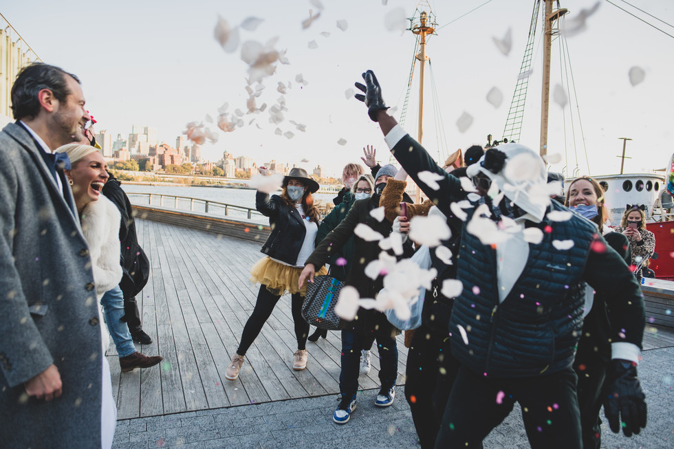 On Halloween, they tied the knot on a pier in Downtown Manhattan (only a few blocks from their apartment), with their parents, siblings, and niece & nephew in attendance. Afterwards, we would take some portraits in the seaport area, then eventually meet back up with their family, and finish up the evening with a celebratory dinner at Mr. C Seaport.